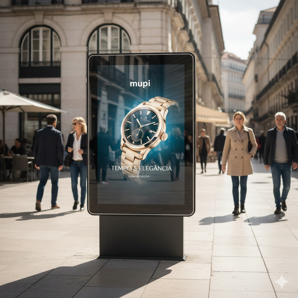 Mupis Outdoor LCD – de 55" a 86", para exterior, com 2.500 e 3.500 nits de brilho, base Android ou Windows, ideais para a exibição de conteúdos publicitários e múltiplas funcionalidades, com tecnologia de ponta.